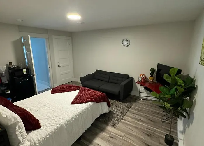 For those who prefer to cook their own meals, the accommodation features self-catering facilities like a microwave oven, a refrigerator, and kitchenware. This apartment is designed to provide guests with convenience and relaxation, complete with coffee and tea makers. Canadian food is served in Fredie's Fantastic Fish House just 1.4 km from the property. The apartment is relatively close to 6505 - Horseshoe Lake Dr At Civic 59 bus station.